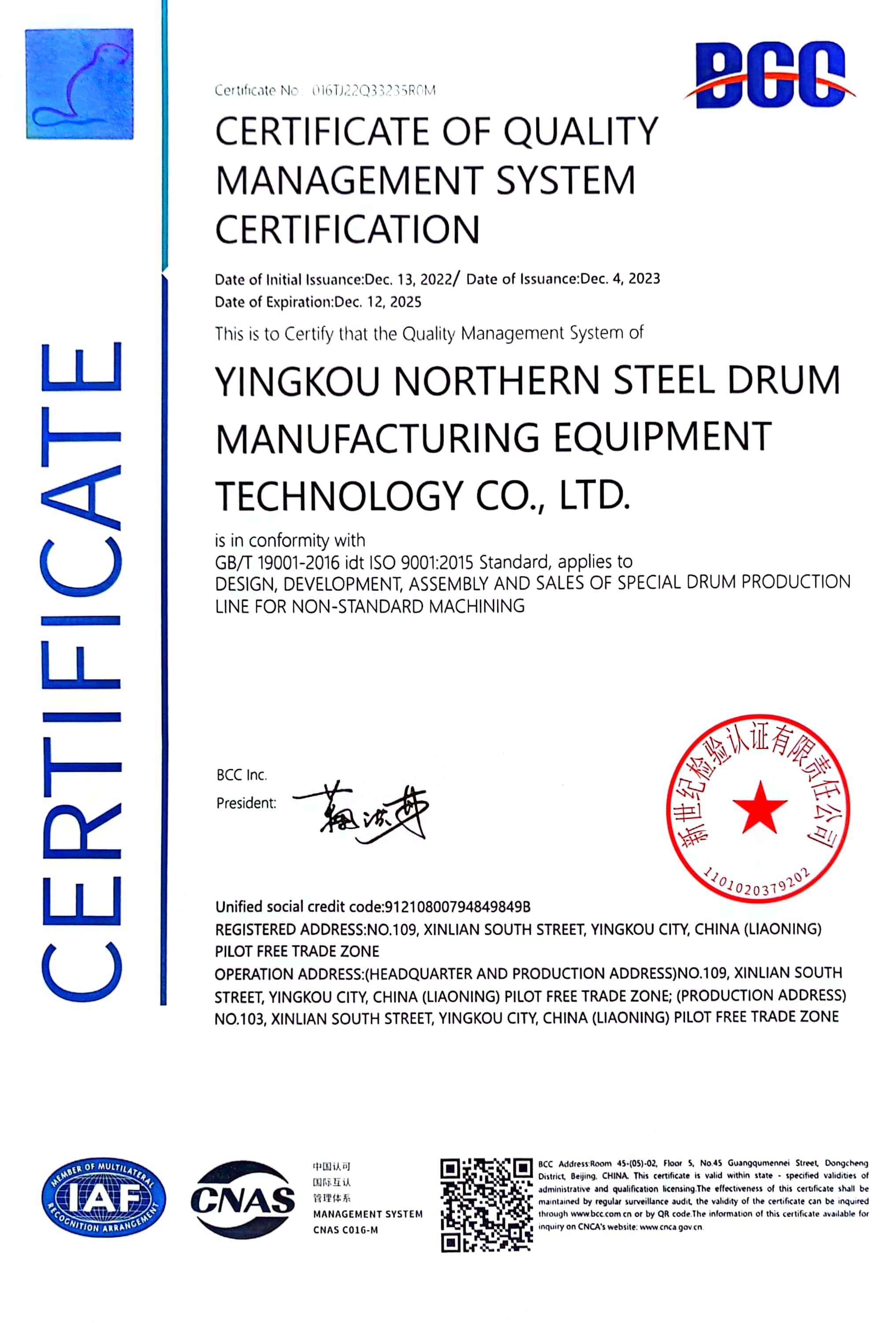 Yingkou Northern Steel Drum Manufacturing Equipment Technology Co., Ltd. is a joint stock company established after the restructuring of China Yingkou petroleum and Natural Gas Corporation (CNPC) Yingkou Drum Factory (founded in 1908). It is a professional company that produces high-speed drum equipment and also steel drums in China.