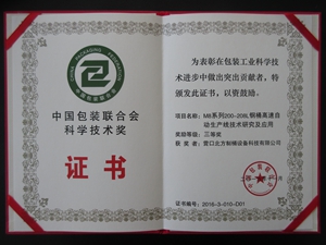 In November, 2016, our M8 series 200-208L drum automatic high-speed production line won the China Packaging Federation Science and Technology Award; due to the outstanding contribution for the industry in China, Mr. Mu Deping, Chairman of our company, won the China Packaging Federation Science Technology Individual Award.