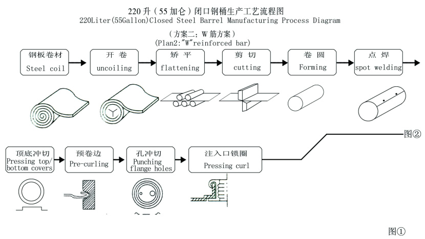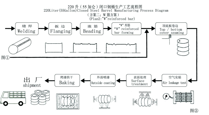 220升(55加侖)閉口鋼桶生產(chǎn)工藝