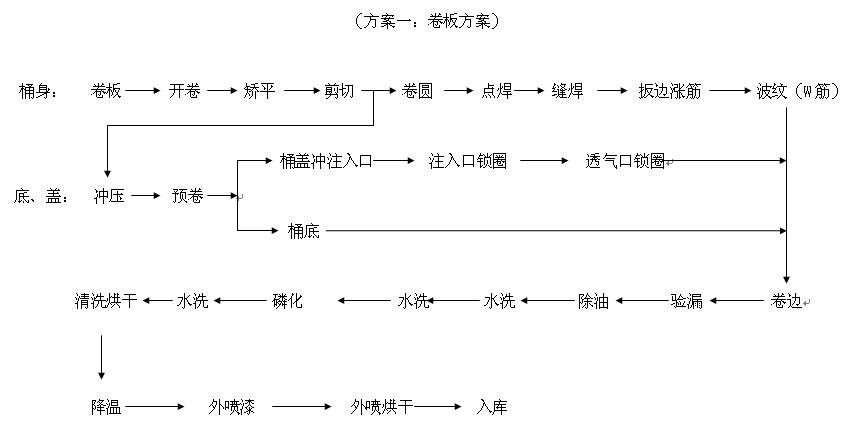 200升閉口鋼桶生產(chǎn)線工藝方案方案一