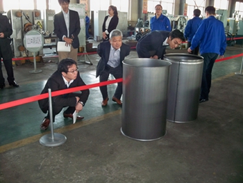 日本鋼桶工業(yè)協(xié)會(JSDA)的會員,共17家,其中鋼桶專業(yè)制造廠家11家,鋼制提桶3家,同時即生產鋼桶又生產鋼制提桶的3家。他們涵蓋了日本鋼桶行業(yè)的整個市場。本次交流團是由日本鋼桶行業(yè)非常具影響力的11家桶廠組成。目前日本200L鋼桶年產量約達1400萬只,提桶年產量約2000萬只。JSDA的會員公司產量涵蓋了日本鋼桶市場百分之百的份額。 我公司作為中國制桶設備行業(yè)龍頭企業(yè)以及長期以來堅持不懈的科技創(chuàng)新精神,尤其是近期設計完成的滾壓焊縫機組、及為德國毛瑟提供的高科技全自動生產線等引起了他們的極大關注。