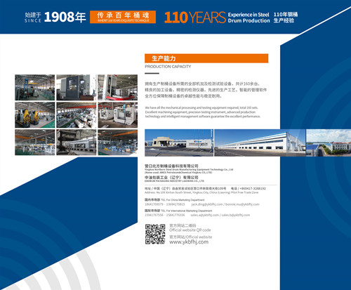 北方制桶設(shè)備始建于1908年,傳承百年桶魂,以科學(xué)技術(shù)為企業(yè)發(fā)展源動力,堅持可持續(xù)發(fā)展觀,引領(lǐng)國內(nèi)乃至國際的制桶行業(yè)嶄新思路,不斷刷新中國鋼桶包裝行業(yè)標準和產(chǎn)品規(guī)范。